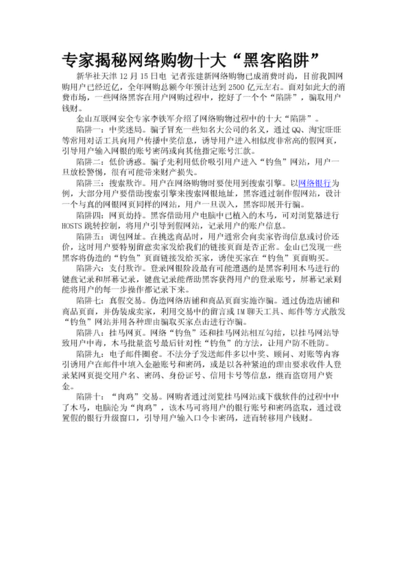 專家揭秘網(wǎng)絡(luò)購(gòu)物十大“黑客陷阱”