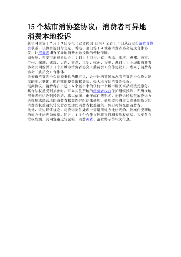 15個(gè)城市消協(xié)簽協(xié)議:消費(fèi)者可異地消費(fèi)本地投訴